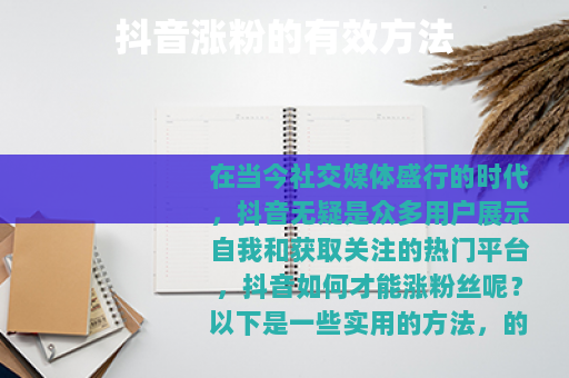 在当今社交媒体盛行的时代,抖音无疑是众多用户展示自我和获取关注的热门平台,抖音如何才能涨粉丝呢?以下是一些实用的方法。