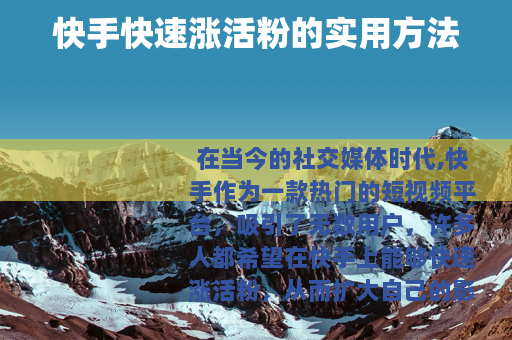 在当今的社交媒体时代,快手作为一款热门的短视频平台,吸引了无数用户,许多人都希望在快手上能够快速涨活粉,从而扩大自己的影响力和社交圈,以下是一些在快手上快速涨活粉的有效方法。