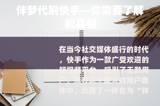 在当今社交媒体盛行的时代,快手作为一款广受欢迎的短视频平台,吸引了无数用户,而在这个庞大的用户群体中,出现了一种名为“伴梦代刷快手”的现象,它引发了不少人的关注和讨论。