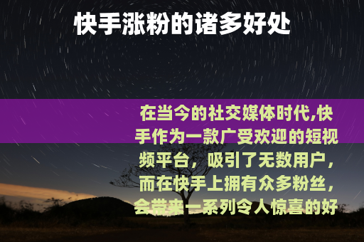 在当今的社交媒体时代,快手作为一款广受欢迎的短视频平台,吸引了无数用户,而在快手上拥有众多粉丝,会带来一系列令人惊喜的好处。