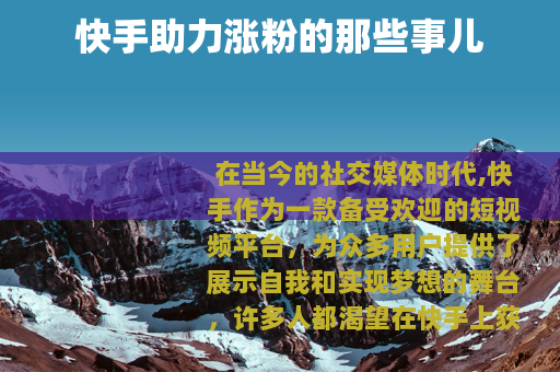 在当今的社交媒体时代,快手作为一款备受欢迎的短视频平台,为众多用户提供了展示自我和实现梦想的舞台,许多人都渴望在快手上获得更多的粉丝,以扩大自己的影响力和社交圈,快手究竟是如何给人涨粉的呢?