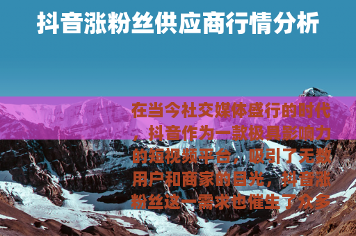 在当今社交媒体盛行的时代,抖音作为一款极具影响力的短视频平台,吸引了无数用户和商家的目光,抖音涨粉丝这一需求也催生了众多供应商,形成了一个独特的市场行情。
