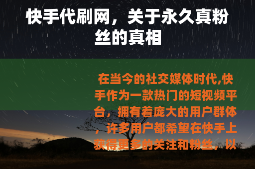 在当今的社交媒体时代,快手作为一款热门的短视频平台,拥有着庞大的用户群体,许多用户都希望在快手上获得更多的关注和粉丝,以展示自己的才华或推广自己的产品与服务,快手代刷网声称能提供永久真粉丝的服务便应运而生,吸引了不少人的目光。