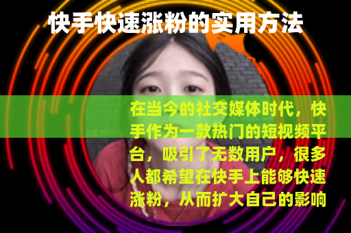 在当今的社交媒体时代,快手作为一款热门的短视频平台,吸引了无数用户,很多人都希望在快手上能够快速涨粉,从而扩大自己的影响力和社交圈,以下是一些在快手快速涨粉的有效方法。