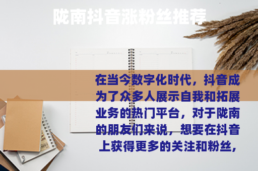 在当今数字化时代,抖音成为了众多人展示自我和拓展业务的热门平台,对于陇南的朋友们来说,想要在抖音上获得更多的关注和粉丝,选择一家合适的服务机构至关重要。