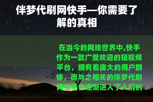 在当今的网络世界中,快手作为一款广受欢迎的短视频平台,拥有着庞大的用户群体,而与之相关的伴梦代刷网快手也逐渐进入了人们的视野。