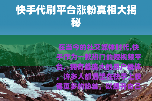 在当今的社交媒体时代,快手作为一款热门的短视频平台,拥有着庞大的用户群体,许多人都渴望在快手上获得更多的粉丝,以提升自己的影响力和知名度,快手代刷平台应运而生,声称可以帮助用户快速涨粉,但快手代刷平台涨粉可靠吗?这是一个值得我们深入探讨的问题。