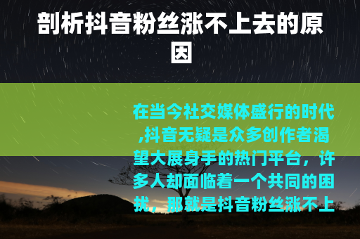 在当今社交媒体盛行的时代,抖音无疑是众多创作者渴望大展身手的热门平台,许多人却面临着一个共同的困扰,那就是抖音粉丝涨不上去,这背后究竟隐藏着哪些原因呢? 质量是关键因素之一,如果发布的视频内容缺乏新意、毫无特色,很难吸引用户的关注并让他们产生持续观看的兴趣,一些视频只是简单地模仿他人,没有自己独特的创意和风格,这样的内容在海量的抖音视频中很容易被淹没,自然无法获得大量粉丝。