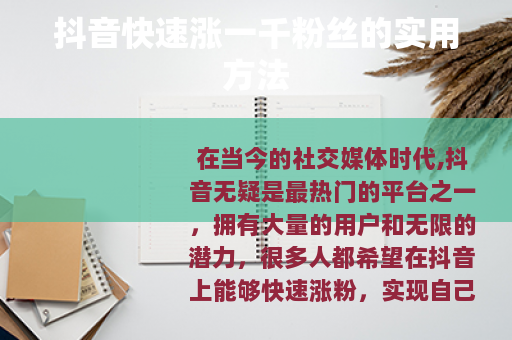 在当今的社交媒体时代,抖音无疑是最热门的平台之一,拥有大量的用户和无限的潜力,很多人都希望在抖音上能够快速涨粉,实现自己的影响力和价值提升,如何在抖音上快速涨一千粉丝呢?以下是一些实用的方法。