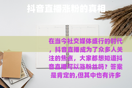 在当今社交媒体盛行的时代,抖音直播成为了众多人关注的焦点,大家都想知道抖音直播可以涨粉丝吗?答案是肯定的,但其中也有许多需要注意的地方。