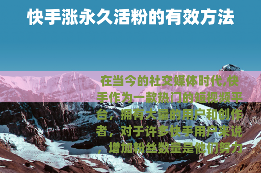 在当今的社交媒体时代,快手作为一款热门的短视频平台,拥有大量的用户和创作者,对于许多快手用户来说,增加粉丝数量是他们努力的目标之一,特别是希望能够获得永久活粉,以提升自己在平台上的影响力和价值。