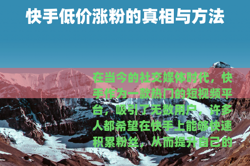 在当今的社交媒体时代,快手作为一款热门的短视频平台,吸引了无数用户,许多人都希望在快手上能够快速积累粉丝,从而提升自己的影响力和知名度,而快手低价涨粉这个话题,也因此备受关注。