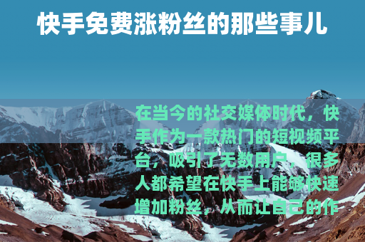 在当今的社交媒体时代,快手作为一款热门的短视频平台,吸引了无数用户,很多人都希望在快手上能够快速增加粉丝,从而让自己的作品获得更多的关注和认可,一些所谓的“快手免费涨1000粉丝网站”便应运而生。
