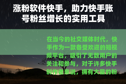 在当今的社交媒体时代,快手作为一款备受欢迎的短视频平台,吸引了无数用户的关注和参与,对于许多快手创作者来说,拥有大量的粉丝是他们追求的目标之一,而涨粉软件快手的出现,为他们提供了一种新的途径和可能。
