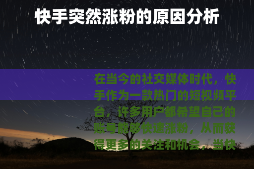 快手突然涨粉并非偶然,而是多种因素共同作用的结果,用户需要不断努力提升自己的内容质量,关注热点话题,利用好平台的算法机制,积极开展互动合作,才能在快手上实现粉丝数量的稳步增长,为自己的创作之路打下坚实的基础。