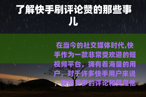 在当今的社交媒体时代,快手作为一款非常受欢迎的短视频平台,拥有着海量的用户,对于许多快手用户来说,获得更多的评论和赞是他们所期望的,这不仅能增加作品的曝光度,还能带来一定的成就感,一些所谓的快手刷评论赞网站便应运而生。