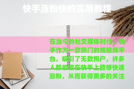 在当今的社交媒体时代,快手作为一款热门的短视频平台,吸引了无数用户,许多人都希望在快手上能够快速涨粉,从而获得更多的关注和机会,以下是一些快手涨粉快的教程,希望能对大家有所帮助。