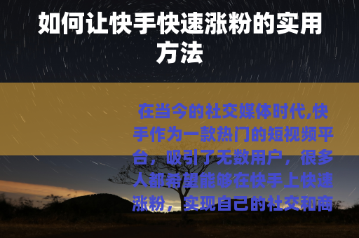 在当今的社交媒体时代,快手作为一款热门的短视频平台,吸引了无数用户,很多人都希望能够在快手上快速涨粉,实现自己的社交和商业价值,以下是一些可以帮助你在快手快速涨粉的有效方法。