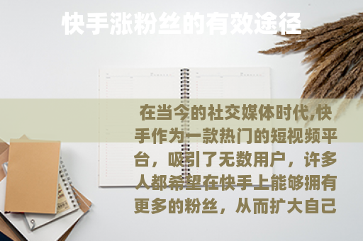 在当今的社交媒体时代,快手作为一款热门的短视频平台,吸引了无数用户,许多人都希望在快手上能够拥有更多的粉丝,从而扩大自己的影响力和社交圈,有哪些靠谱的方法可以帮助我们在快手上涨粉丝呢?