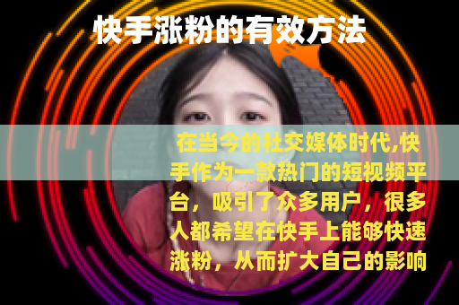 在当今的社交媒体时代,快手作为一款热门的短视频平台,吸引了众多用户,很多人都希望在快手上能够快速涨粉,从而扩大自己的影响力和获得更多的机会,以下是一些快手涨粉的实用方法。