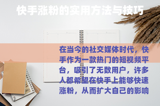 在当今的社交媒体时代,快手作为一款热门的短视频平台,吸引了无数用户,许多人都希望在快手上能够快速涨粉,从而扩大自己的影响力和社交圈,以下是一些关于快手如何涨粉的有效方法。 是涨粉的关键,要确保你的视频具有独特性和吸引力,可以从自己的兴趣爱好、特长技能出发,制作出能够展现个性的视频,如果你擅长烹饪,那么可以制作一系列精美的美食制作视频,详细地展示每一道菜肴的制作过程,从食材准备到烹饪技巧,再到最后的成品展示,让观众在观看过程中不仅能够学到知识,还能感受到美食的魅力。