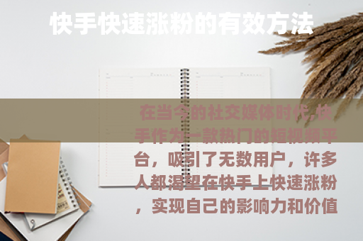 在当今的社交媒体时代,快手作为一款热门的短视频平台,吸引了无数用户,许多人都渴望在快手上快速涨粉,实现自己的影响力和价值提升,以下是一些能够帮助你在快手快速涨粉的方法。 是关键,你需要创作独特、有趣且有价值的短视频,无论是搞笑段子、美食制作教程、生活小窍门还是才艺展示,都要确保你的内容能够吸引观众的眼球并让他们产生共鸣,如果你擅长烹饪,那么可以制作一系列精美的美食制作视频,详细展示每一个步骤和独特的烹饪技巧,让观众在观看的过程中不仅能够学到知识,还能感受到美食的魅力,从而吸引他们持续关注你的账号。