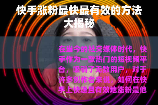 在当今的社交媒体时代,快手作为一款热门的短视频平台,吸引了无数用户,对于许多创作者来说,如何在快手上快速且有效地涨粉是他们最为关注的问题之一,以下是一些经过实践验证的快手涨粉方法,希望能帮助你在快手上获得更多的关注和粉丝。 是涨粉的基础,确保你的视频具有独特性、趣味性和实用性,可以从自己的兴趣爱好、专业技能或生活中的点滴趣事出发,制作出能够引起观众共鸣的视频,如果你擅长烹饪,那么可以制作一系列精美的美食制作视频,详细展示每一道菜肴的制作过程和技巧,让观众在观看的过程中不仅能够欣赏美食,还能学到烹饪知识。