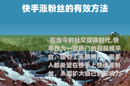 在当今的社交媒体时代,快手作为一款热门的短视频平台,吸引了无数用户,很多人都希望在快手上快速涨粉丝,从而扩大自己的影响力和社交圈,以下是一些快手涨粉丝比较快的方法。