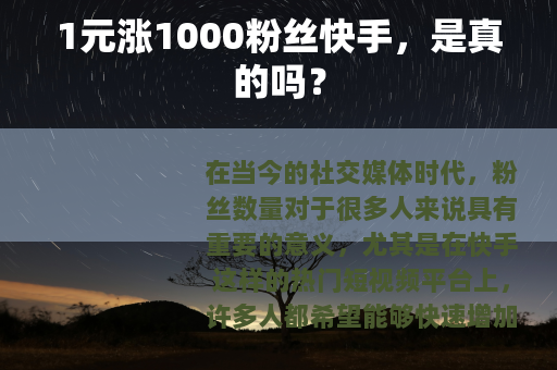 在当今的社交媒体时代,粉丝数量对于很多人来说具有重要的意义,尤其是在快手这样的热门短视频平台上,许多人都希望能够快速增加自己的粉丝量,从而提升自己的影响力和知名度,而“1元涨1000粉丝快手”这样的说法,无疑吸引了众多人的目光。