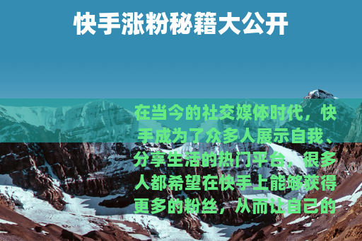 在当今的社交媒体时代,快手成为了众多人展示自我、分享生活的热门平台,很多人都希望在快手上能够获得更多的粉丝,从而让自己的作品得到更广泛的关注,快手怎么玩才能涨粉丝呢?以下是一些实用的方法。
