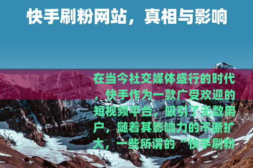 在当今社交媒体盛行的时代,快手作为一款广受欢迎的短视频平台,吸引了无数用户,随着其影响力的不断扩大,一些所谓的“快手刷粉网站”也悄然出现,引发了众多关注和讨论。