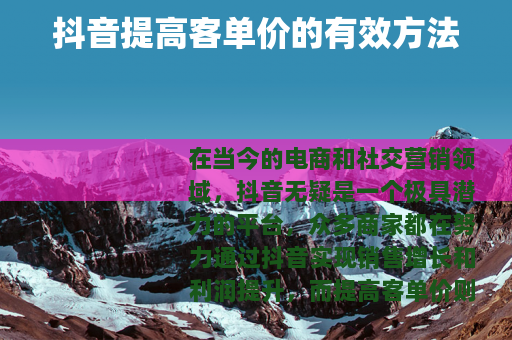 在当今的电商和社交营销领域,抖音无疑是一个极具潜力的平台,众多商家都在努力通过抖音实现销售增长和利润提升,而提高客单价则是实现这一目标的关键环节之一,在抖音上如何提高客单价呢?以下是一些实用的方法。