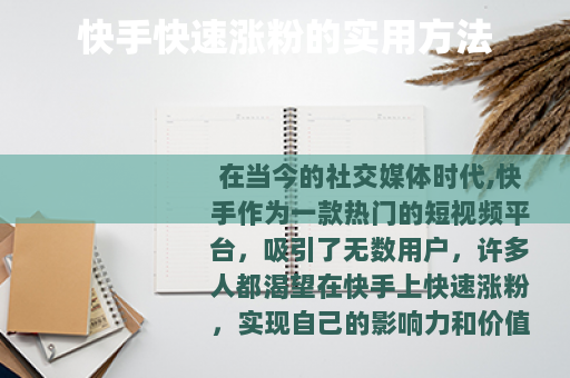 在当今的社交媒体时代,快手作为一款热门的短视频平台,吸引了无数用户,许多人都渴望在快手上快速涨粉,实现自己的影响力和价值,如何才能让快手快速涨粉呢?以下是一些实用的方法。