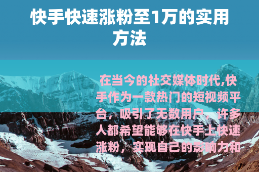 在当今的社交媒体时代,快手作为一款热门的短视频平台,吸引了无数用户,许多人都希望能够在快手上快速涨粉,实现自己的影响力和价值,以下是一些可以帮助你在快手快速涨粉至1万的有效方法。