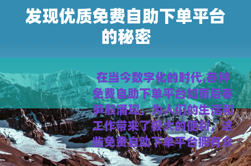 在当今数字化的时代,各种免费自助下单平台如雨后春笋般涌现,为人们的生活和工作带来了极大的便利。