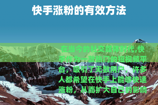 在当今的社交媒体时代,快手作为一款热门的短视频平台,吸引了无数用户,许多人都希望在快手上能够快速涨粉,从而扩大自己的影响力和社交圈,以下是一些快手涨粉的实用方法。