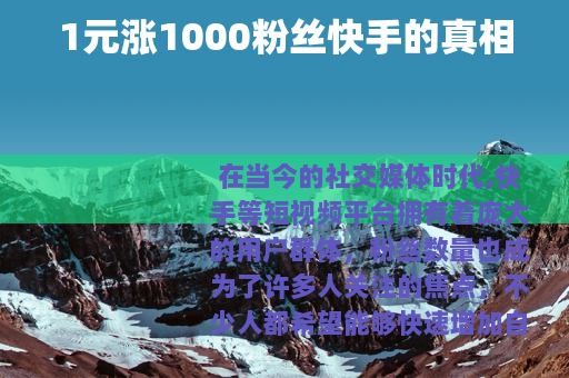 在当今的社交媒体时代,快手等短视频平台拥有着庞大的用户群体,粉丝数量也成为了许多人关注的焦点,不少人都希望能够快速增加自己在快手上的粉丝量,从而获得更多的关注和机会,而“1元涨1000粉丝快手”这样的说法也在网络上悄然兴起,吸引了众多人的目光。