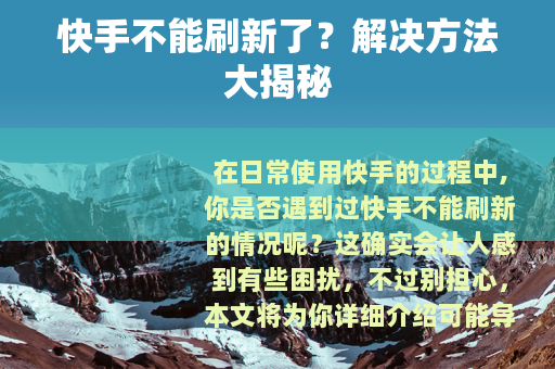 在日常使用快手的过程中,你是否遇到过快手不能刷新的情况呢?这确实会让人感到有些困扰,不过别担心,本文将为你详细介绍可能导致这种情况出现的原因以及相应的解决办法。