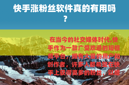 在当今的社交媒体时代,快手作为一款广受欢迎的短视频平台,拥有大量的用户和创作者,许多人都希望在快手上获得更多的粉丝,以增加自己的影响力和知名度,快手涨粉丝软件应运而生。