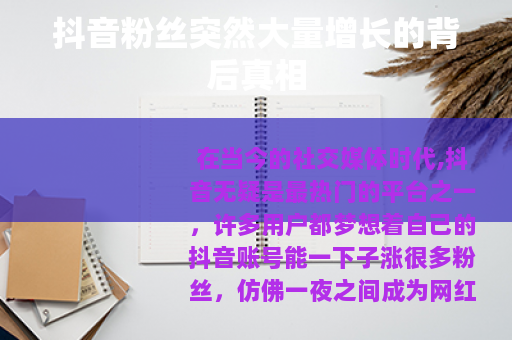 在当今的社交媒体时代,抖音无疑是最热门的平台之一,许多用户都梦想着自己的抖音账号能一下子涨很多粉丝,仿佛一夜之间成为网红,抖音一下涨很多粉丝是怎么回事呢?