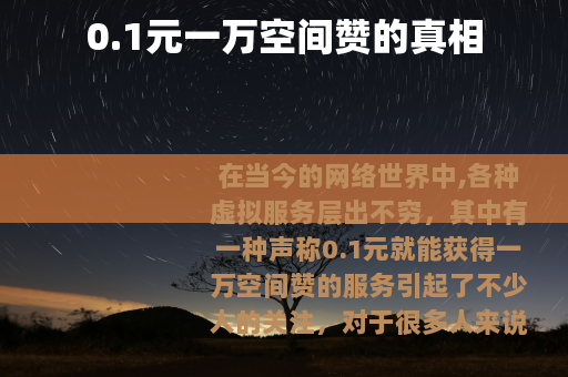 在当今的网络世界中,各种虚拟服务层出不穷,其中有一种声称0.1元就能获得一万空间赞的服务引起了不少人的关注,对于很多人来说,在社交平台或个人空间上拥有大量的赞是一种渴望,它似乎代表着人气和受欢迎程度。