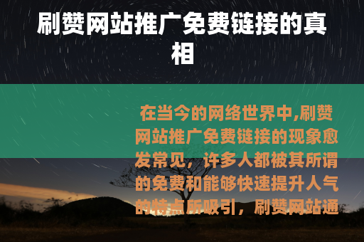 在当今的网络世界中,刷赞网站推广免费链接的现象愈发常见,许多人都被其所谓的免费和能够快速提升人气的特点所吸引。