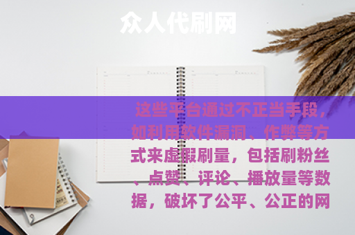 正文 众人代刷网 admin V管理员 /2026-01-05 04:33:05 /35 阅读 0105 这些平台通过不正当手段,如利用软件漏洞、作弊等方式来虚假刷量,包括刷粉丝、点赞、评论、播放量等数据,破坏了公平、公正的网络环境和商业规则,它们可能涉及侵犯他人隐私、违反平台规定,还可能存在诈骗、窃取用户信息等安全隐患,甚至可能触犯法律法规,导致使用者面临法律责任。 在网络活动中,应远离此类非法代刷平台,通过合法、合规、诚信的方式来开展业务、积累人气和进行社交互动等。