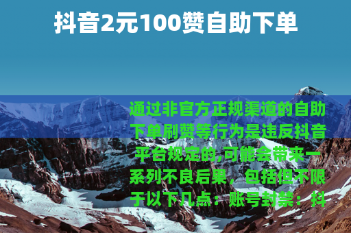 通过非官方正规渠道的自助下单刷赞等行为是违反抖音平台规定的,可能会带来一系列不良后果,包括但不限于以下几点:
