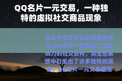 在当今丰富多彩的网络世界中,QQ作为一款具有广泛影响力的社交软件,其生态系统中衍生出了许多独特的现象,QQ名片一元交易便是其中之一。