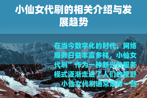 在当今数字化的时代,网络服务日益丰富多样,小仙女代刷”作为一种新兴的服务模式逐渐走进了人们的视野。
