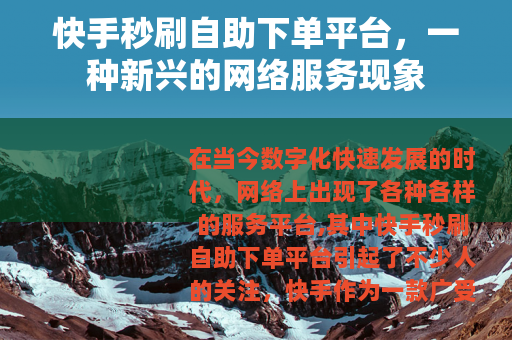 在当今数字化快速发展的时代,网络上出现了各种各样的服务平台,其中快手秒刷自助下单平台引起了不少人的关注。