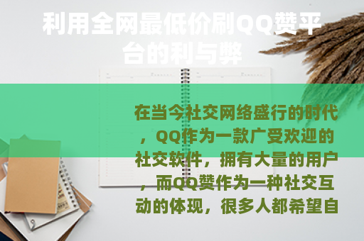 全网最低价刷QQ赞平台既有其存在的合理性和一定的优势,如价格低、能满足部分用户的需求等,但也存在着诸多弊端,如虚假人气、影响社交生态和个人发展等,对于用户来说,在使用这些平台时应该保持理性和适度,不能过度依赖刷赞来获取关注,而要更加注重自身内容的质量和真实社交关系的建立,以实现真正的社交价值和个人成长,社交平台也应该加强对刷赞等违规行为的监管,维护良好的社交生态环境,让社交网络能够健康、有序地发展,我们才能在享受社交网络带来的便利和乐趣的同时,避免陷入虚假和浮躁的陷阱,真正实现有意义的社交互动和个人发展。