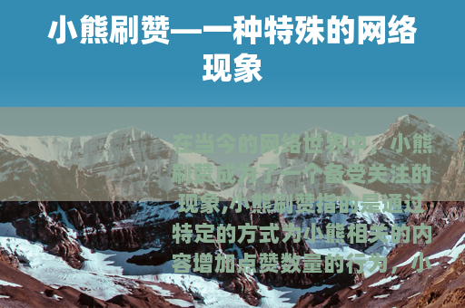在当今的网络世界中,小熊刷赞成为了一个备受关注的现象,小熊刷赞指的是通过特定的方式为小熊相关的内容增加点赞数量的行为。