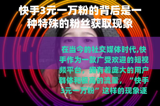 在当今的社交媒体时代,快手作为一款广受欢迎的短视频平台,拥有着庞大的用户群体和极高的流量。“快手3元一万粉”这样的现象逐渐进入了人们的视野。